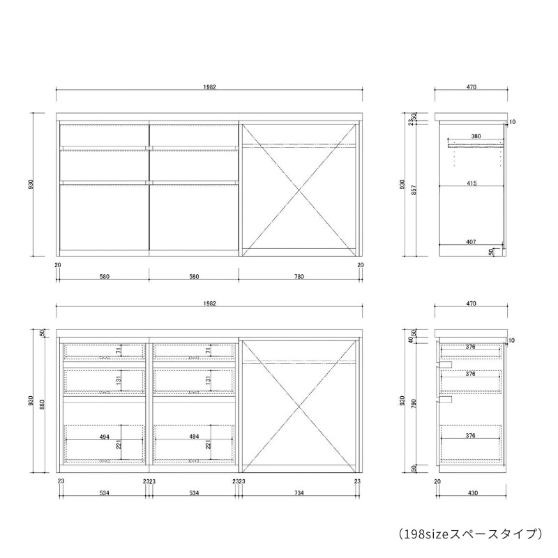 W1982×D470×H930mm |